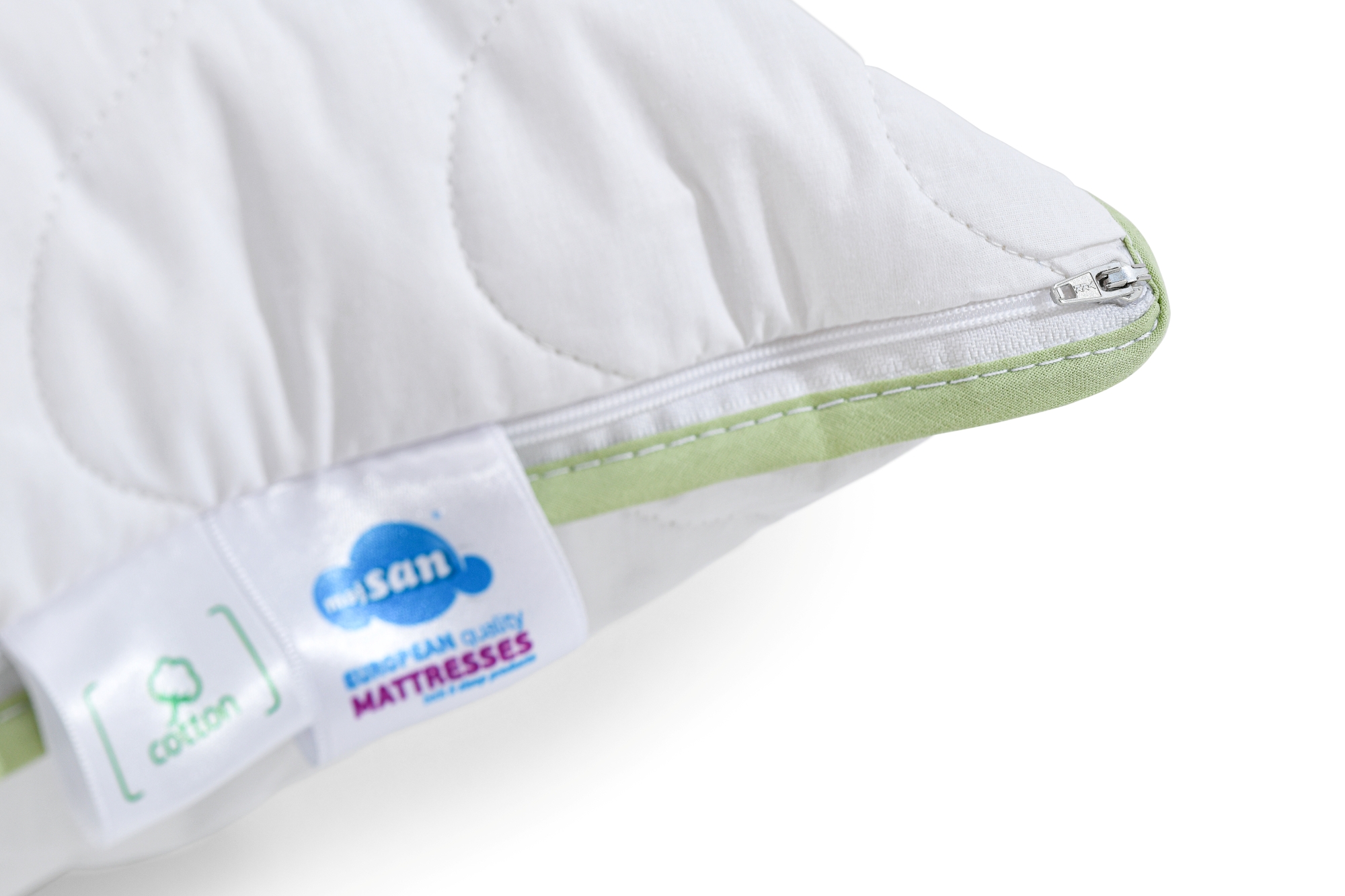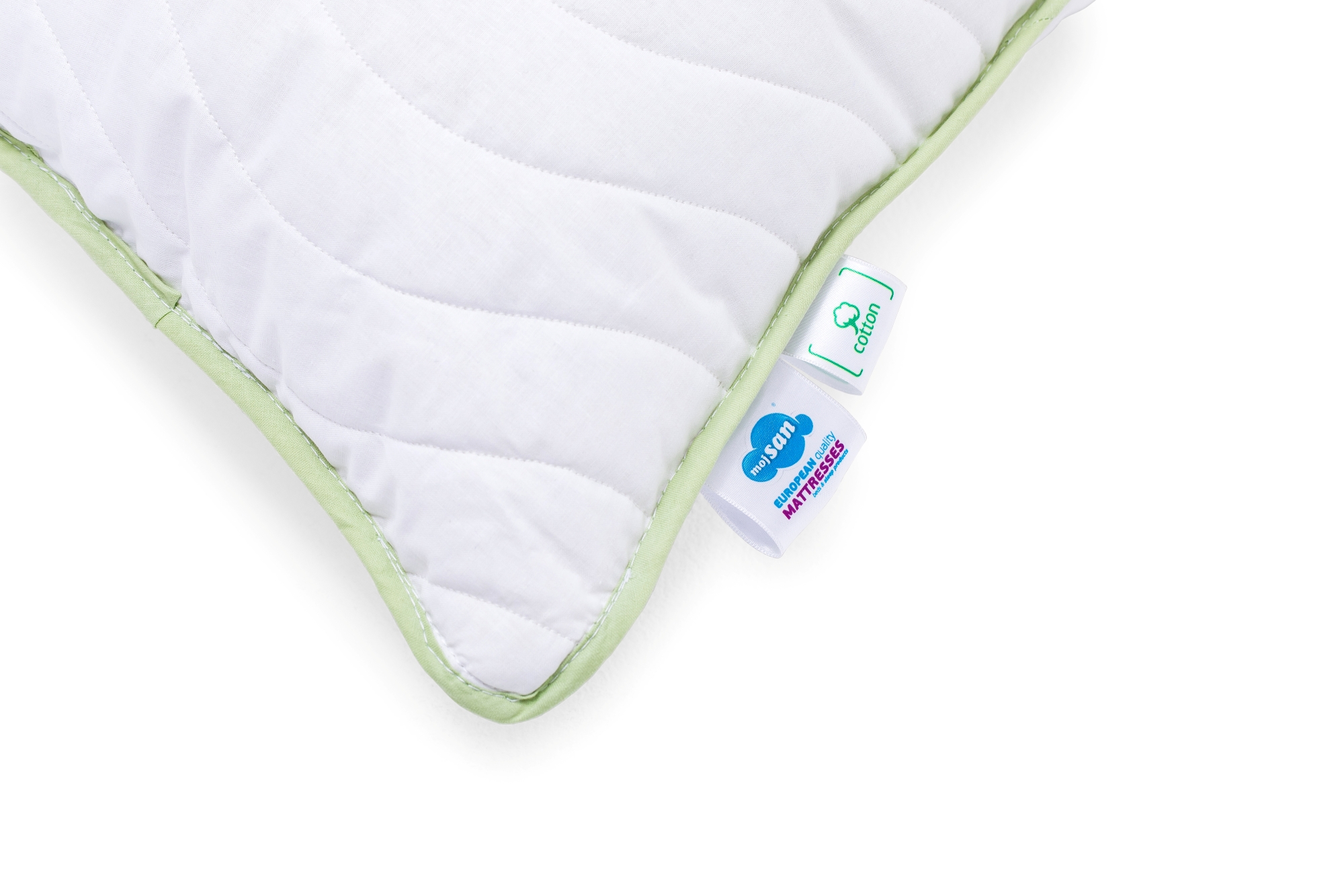 Pamuk, kao prirodni materijal koji je korišten u proizvodnji ovog jastuka ima svojstva da apsorpcijom vlage i do 30%, čini okruženje spavanja suhim te spriječava prekomjerno znojenje. Jastuk MojSan Pamuk se zbog tog svojstva može preporučiti osobama osjetljivim na potencijalne probleme ovog tipa. Vanjska navlaka ovog jastuka je izrađena od čiste pamučne tkanine, štepana je sa slojem pamučnih vlakana, dok je unutarnja navlaka ovog jastuka također izrađena od sloja pamučnog platna.