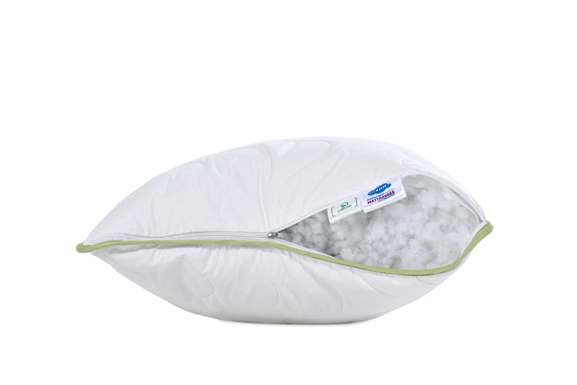 Jastuk MojSan Pamuk je klasični jastuk sa vanjskom navlakom od 100%-tnog pamučnog platna, proštepanom, također, čistim pamučnim slojem sa unutrašnjom navlakom punjenom mekanom silikonskom kuglicom. Periva navlaka na 40°C sa patent zatvaračem garantira vrhunski higijenski ambijent spavanja. Ukoliko preferirate jastuke u klasičnoj formi, jastuk MojSan Pamuk je pravi izbor za Vas. Ovaj jastuk nudimo u dvije dimenzije 65x50 i 75x60.